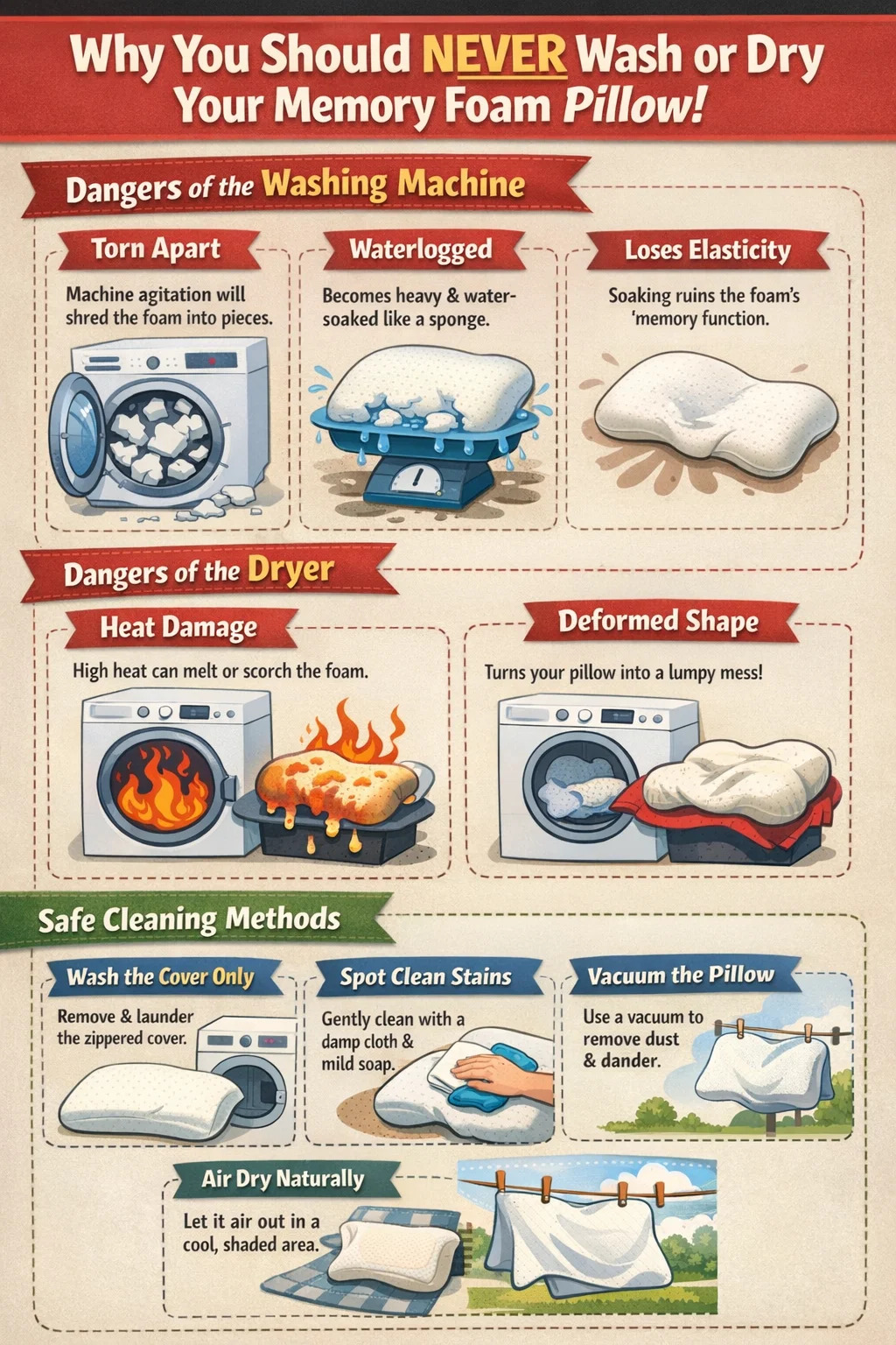 Mengapa pengering berbahaya untuk bantal busa memori?