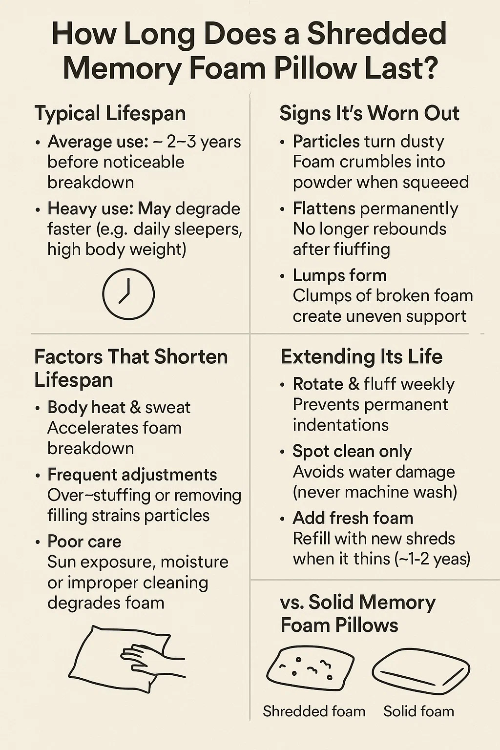 Tambahkan busa segar: Isi ulang dengan serpihan baru saat menipis (~ 1-2 tahun)