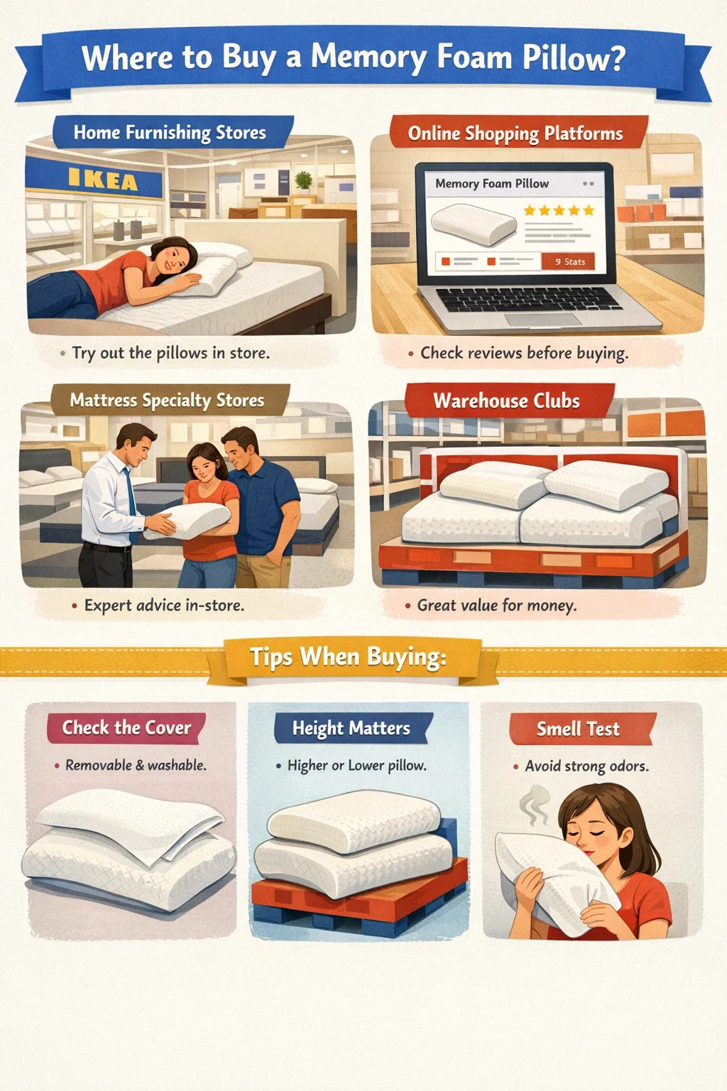 Jika Anda berencana membeli bantal busa memori, ada banyak tempat di mana Anda bisa menemukannya. Namun, saluran pembelian yang berbeda memiliki kelebihan dan kekurangannya masing-masing. Untuk membantu Anda menemukan yang paling cocok, berikut beberapa tempat umum untuk membelinya dan beberapa saran:
