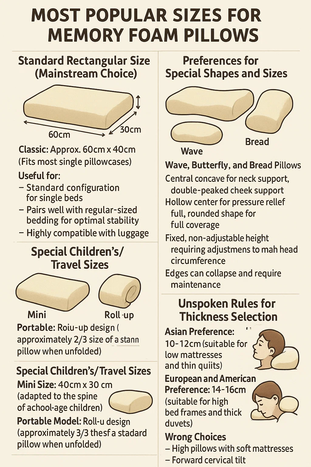 Berikut iNi adalah rincian ukuran paling populer untuk bantal busa memori :
